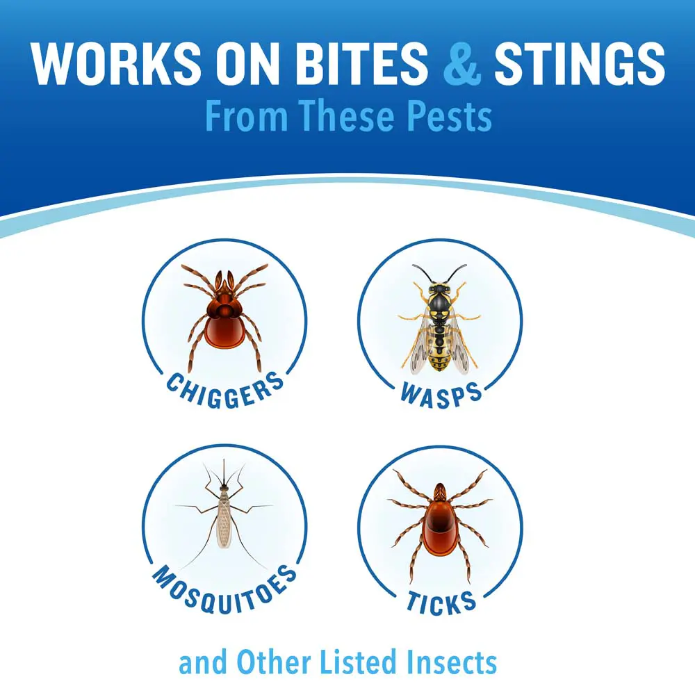 - Si la picazón persiste, aplique nuevamente en 10 a 15 minutos. Para garrapatas y abejas, retire la garrapata o el aguijón antes del tratamiento.
